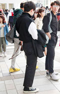 セットアップにキャップ、クラッチバックというラフなスタイルも...