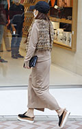 カジュアルアイテムにファーベストを重ねたお出かけファッション...
