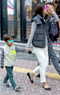 ダウンベストもボックス型のステッチだと上品な印象になる。イン...