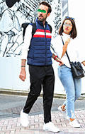 外国人の男性にもダウンベストが人気。ジャストサイズでトリコロ...