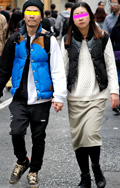 ダウンベストのカップルに遭遇。「若い大人」のアクティブなファ...