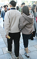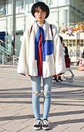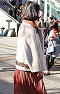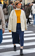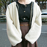 いちばん上に着たアイテムがボア素材の女性すべて。袖だけ、身頃だけなど広い面積のパーツ使いも含む。色や柄は問わない。ベストも含む。