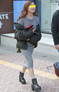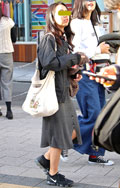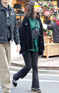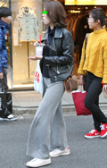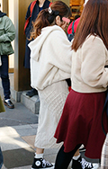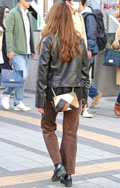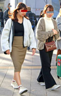 ショート丈のニットワンピースも散見された。ミニスカートにショ...
