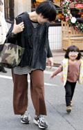 柔らかく動きやすいニットパンツは若いママにも重宝されているよ...