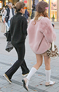 ピンクのボアアウターから覗くのはニットのショートパンツ。今季...
