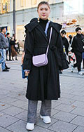 休憩中のヘアスタイリストさん。茶×黒×白の分量と質感が今年っ...