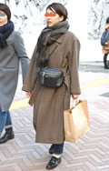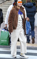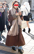 いちばん上に着用したアイテムの色が茶色の女性すべて。柄や素材などは問わない。
