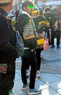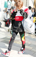 ラスタカラーでまとめたコーディネートが目を引いた男性。ジャケ...