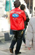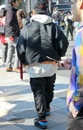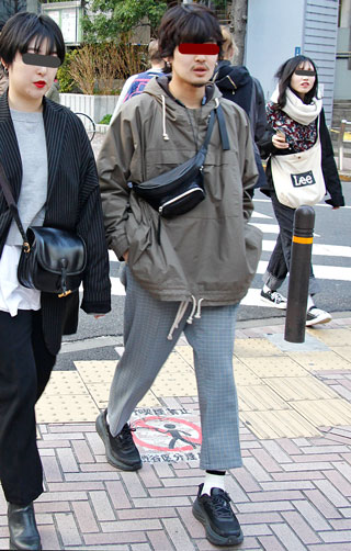 シャカシャカ素材のパンツも少数ながら見られた。こちらは渋谷に...