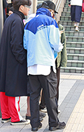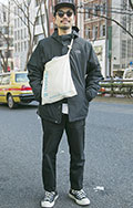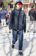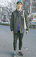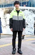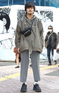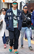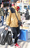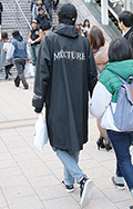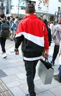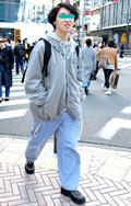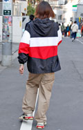 バイカラーでロゴ入りのシャカシャカ素材アウターも目立った渋谷...