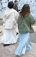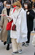 こちらの女性は白のミリタリーっぽいアウターをワントーンコーデ...