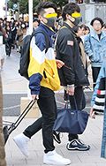 ヒョウ柄と黄色でお揃いコーデのアジア系観光客。連日雨の中の貴...