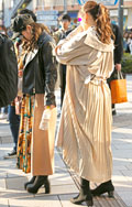 夕方になってぐっと増えたベージュ系のビッグ&ロングコート。身...