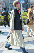 インナーダウンを中に着ている人は多いが、こちらの男性は敢えて...