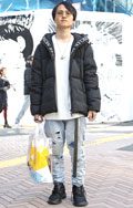 大きな丸メガネが中性的な印象のシティボーイスタイル。よく見る...