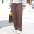 ブラウンが好きで、全部同じブラウンよりも濃さに変化をつけています。ニット素材で温かいです。強い印象を持たれるから、基本的に柔らかい色の服を着るようにしています。