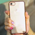 iPhone8。スマホケースはシンプルなものが良くて、スマホの本体の色が見えるようにフレームのタイプを買いました。