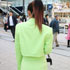 文化の入学式で着る色物のセットアップを探していて。映えるものが欲しくて、黄緑着たら目立てるかなーと思って選びました。