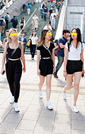 トップスをボトムスに完全にインしていたり、オーバーベルトをしてウエストをマークしている女性すべて。