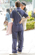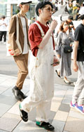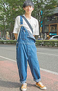 ダボっとしたワークっぽいオーバーオールは男性にも人気。サング...