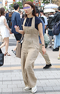 麻素材が大人っぽい印象のサロペット。今季はサンドベージュや麻...