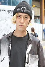 派手なシャツが欲しくて、ひと目惚れしました。普段はシンプルなシャツが多いです。昔はシンプルなやつが好きだったんです。普段はパンツにインも結構するけれど、今日は外に出して着ています。