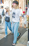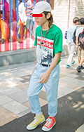 カラフルなコーディネートにさらにフォトプリントをプラスした、...