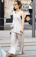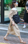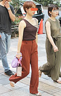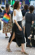 肩の一部に深めの切れ込みが入ったデザイントップスも散見された...