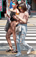 漢字がプリントされたTシャツが原宿で再浮上していた。ヘソ出し...