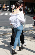 今年は変形トップスによる背中の肌見せも人気。こちらはチューブ...