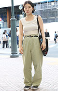 デザイントップスもタックインしてウエストマークするのが鉄則。...