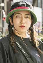 先輩と服屋を回っている時に、店員さんに勧められて。試着してみて、ジャストの丈感とシルエットで買ってしまいました。最近注目していたアイテムだったけど、丈感とかなかなかお店にいいのがなかったです。バケットハットはEXILEのNAOTOが被っていたのを見てハットってかわいいなと思ってて、たまたま立ち寄ったSTUSSYで発見したんです。今まではキャップしか被っていませんでした。赤と緑のラインがユニークでお気に入りです。だぼっとした黒のパーカーやTシャツに合わせることが多いです。