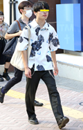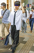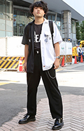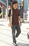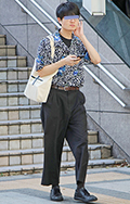 柄シャツ+黒スラックスの組み合せも大学生を中心に引き続き人気...