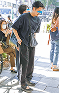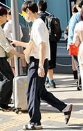 タック入りのテーパードパンツも男女共に散見された。Tシャツは...