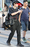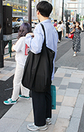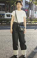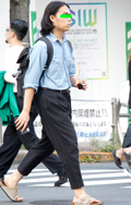 新宿で多かったのはテーパードタイプの黒パンツ。20代後半~3...