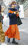 ネイビー×オレンジのバイカラーニットを存在感たっぷりのプリー...