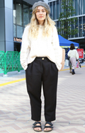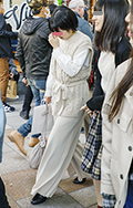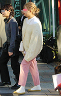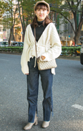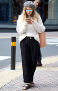 白ニットを使ったワントーンコーディネートも多かった。ブロック...