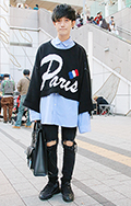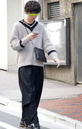 グレージュ色のゆるニットの男子に遭遇。袖口や裾口も、胴まわり...