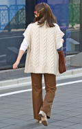 ダブルケーブル編みのポンチョ風ベスト。初秋はコットンの上に軽...