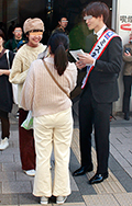 ペールトーンのニットセーターで揃えた双子コーデ風の2人組。温...