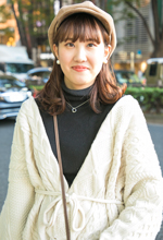 11月はじめの時期は、コートは早いけどニットは羽織で使えて脱ぎ着可能だから選びました。普段はベージュやブラウン系が多いけど、ショッピング中にピンときたのが白でした。