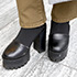 ミドル丈で、靴下みたいな形でフィット感があって、太いヒールで歩きやすいです。今日は雨が降るのでヒールにしました。普段はピンヒールはあまりはかず、厚底の靴が多いです。1年前から同じ感じの趣味です。スニーカーでも厚底です。今日のコーデは、バッグを持ちたくて、バッグメインで決めました。