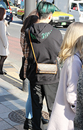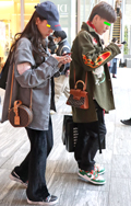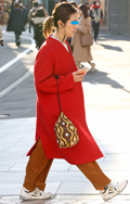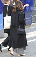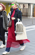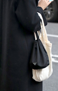 ミニバッグの上からアウターを着るスタイルも少なくなかった。ヒ...