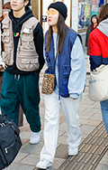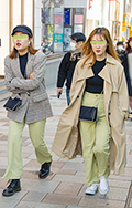 春夏に増えそうなピスタチオカラーのパンツが目を引いた2人組。...