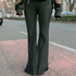 今日のポイントは、脚を長く見せること。上はショート丈のジャケットを着て、下はブーツが隠れるくらいの長いリブパンツをはきました。