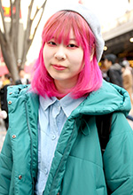 ダウンを買ったときは緑にハマっていました。服は色物が多くて、コートも持っています。何を着るかは中の服によって決めます。流行りのものより好きなものを着ます。