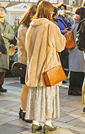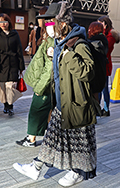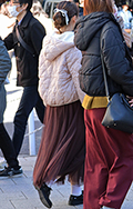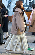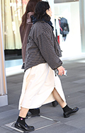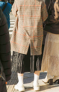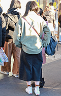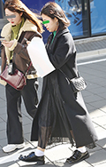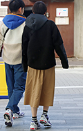 ロングスカート+ソックス2人連れは、アウターとソックスを同系...