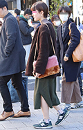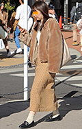 今季非常に多く見かけられる茶ベージュ系でまとめたスタイル。茶...