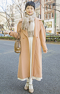 ベージュの柔らかいワントーンコーデが目を引いたこちらの女性。...