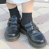 自分的には、足首と靴下の間のところを見せるスタイルが好きなんです。暗い色のファッションが多いので、肌色を見せるとしまった感じになるかなと思います。ロングスカートの時は短い靴下、普通のスカートの時も靴下だし、パンツでも同じ。普段からタイツははきません。